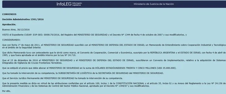 El cinismo no termina ahí: la comunicación de las primeras adquisiciones por 84 millones de dólares se hizo en fechas estratégicamente elegidas para pasar desapercibidas. Mientras el país se preparaba para el brindis de Fin de Año, el 30 de diciembre de 2016, Bullrich cerró una compra por 35 millones de dólares a la empresa israelí IAI ELTA. Apenas tres días después, el 2 de enero de 2017, el Boletín Oficial informó la autorización para adquirir cuatro lanchas patrulleras al astillero Israel Shipyards por 49 millones de dólares, supuestamente para combatir el terrorismo en la Hidrovía.
