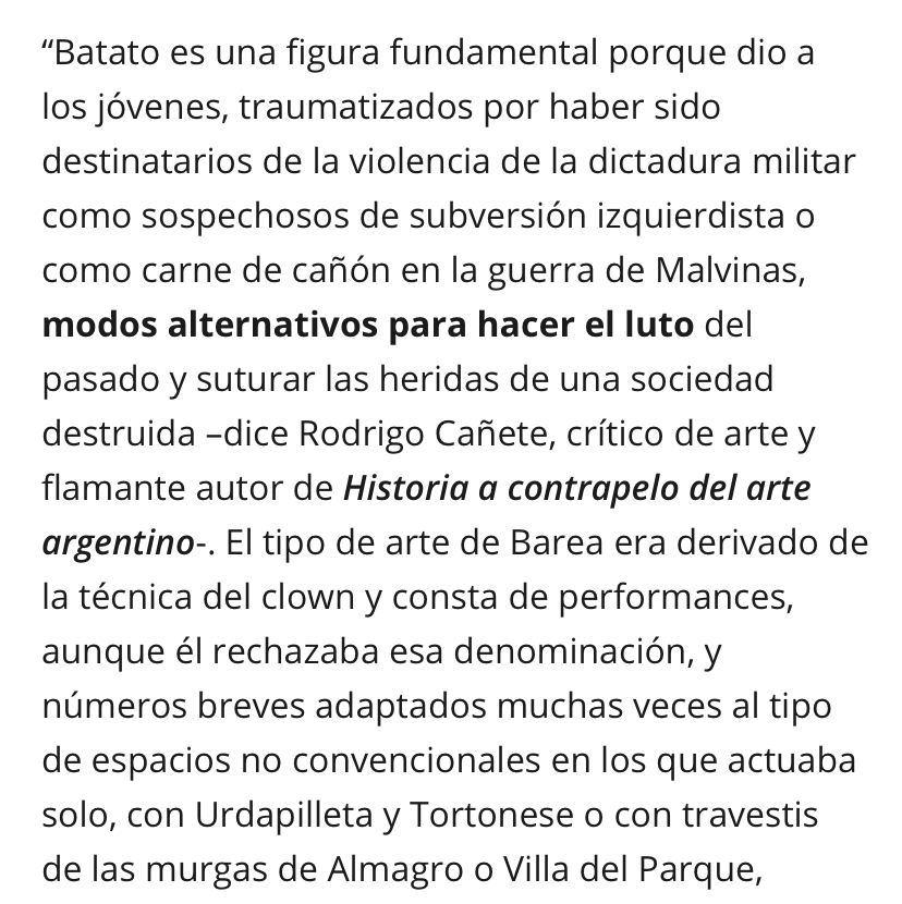Una semana antes su falta de perspectiva en, prácticamente todos los temas culturales, lo vio pidiéndome consejos e input que fueron publicados en una nota sobre Batato Barea de quien tenia poca o ninguna idea. Una semana antes….