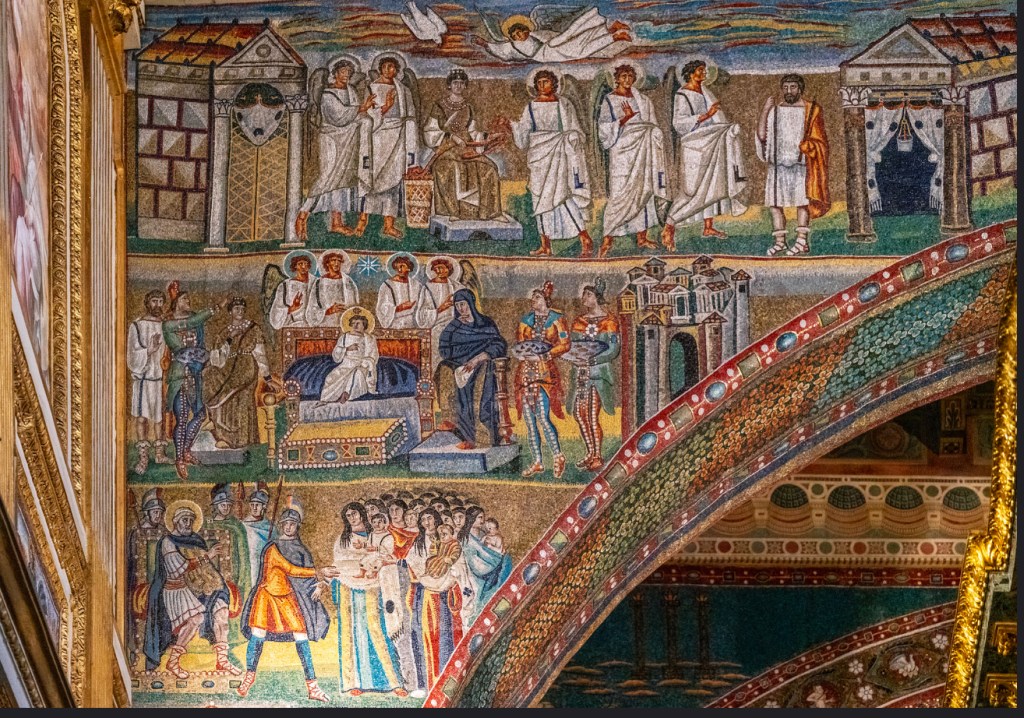 En el ábside de Santa María Maggiore se conserva uno de los conjuntos de mosaicos más antiguos del cristianismo romano. Ejecutados en el siglo V por encargo del papa Sixto III, celebran el Concilio de Éfeso (431), que confirmó la maternidad divina de María (Theotokos) frente a la herejía nestoriana. El Cristo que aparece entronizado no es, como suele pensarse, una imagen arriana, pero sí conserva huellas de un momento de indecisión iconográfica y teológica en que la figura de Jesús no había sido del todo absorbida por la lógica imperial del Pantocrátor bizantino. Cristo como Zeus. El dios macho, brutal, condenatorio, que Francisco, evidentemente, con ternura, rechaza.