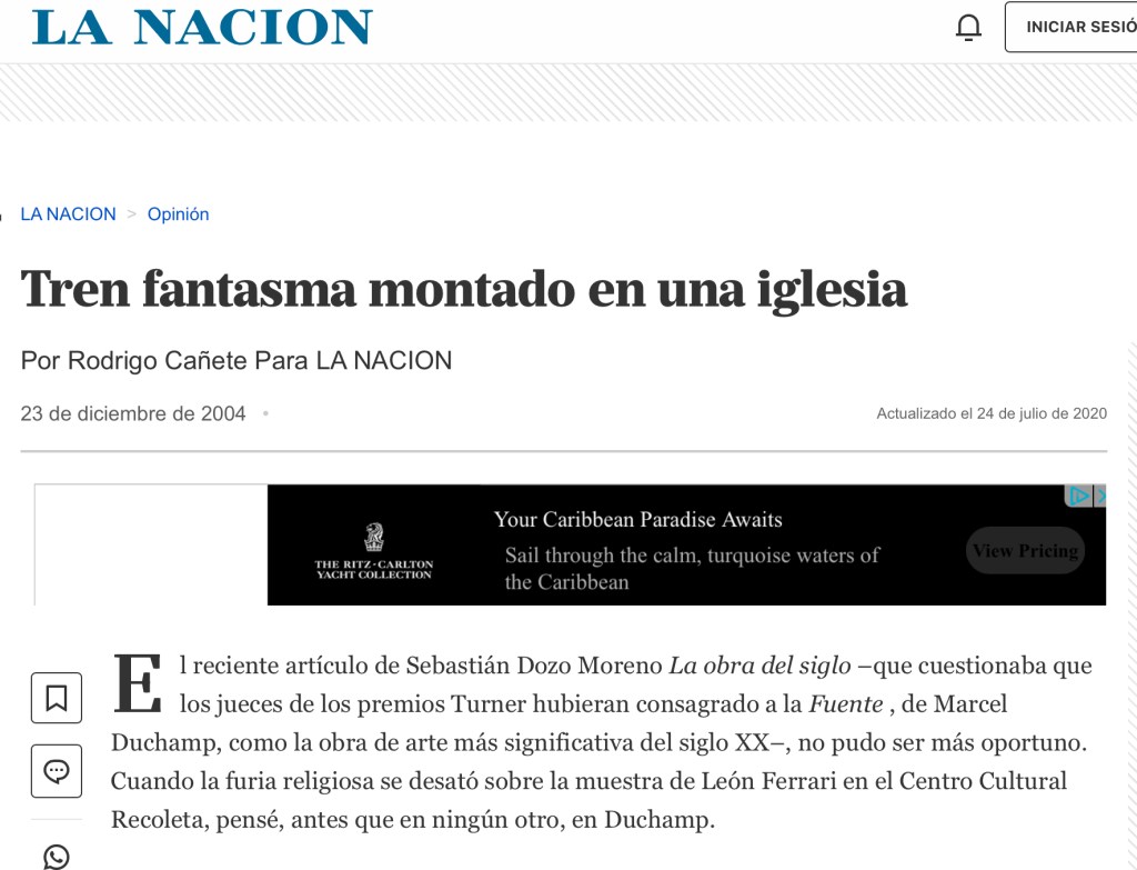 Pero, como todo en la vida, sobre todo la verdad suele ser más compleja que eso. Ferrari no fue solo un crítico de la Iglesia; también fue cómplice de los circuitos de capital simbólico y material del arte. Su canonización póstuma como mártir estético del antiautoritarismo responde a esto y corre el riesgo de borrar las ambivalencias de su carrera. Del mismo modo, Bergoglio —hoy recordado por algunos, aunque sea al pasar, como censor estético, tal es el caso de Hyperallergic— fue, durante la dictadura, alguien que ayudó materialmente a proteger cuerpos concretos. Francisco salvó vidas llevándolas en su propio auto bajo frazadas. Tenemos, entonces, aquí dos figuras que exceden los roles que los críticos les asignaron. Ferrari no fue siempre un santo aunque le hayan matado un hijo, y Bergoglio no fue siempre un perseguidor porque haya considerado una totalizante generalización la performativa muestra instalación in-situ de Ferrari en el Recoleta que, en su momento, califiqué de tren fantasma. El gran problema del mundo del arte es que está obsesionado con la claridad moral y prefiere olvidar esas contradicciones para centrarse en extremos hasta que pasa algo como la muerte del Papa y quedan en off-side. De ahi, el fallido intento de Hyperallergic de componer, al menos, temporalmente, esa relación.