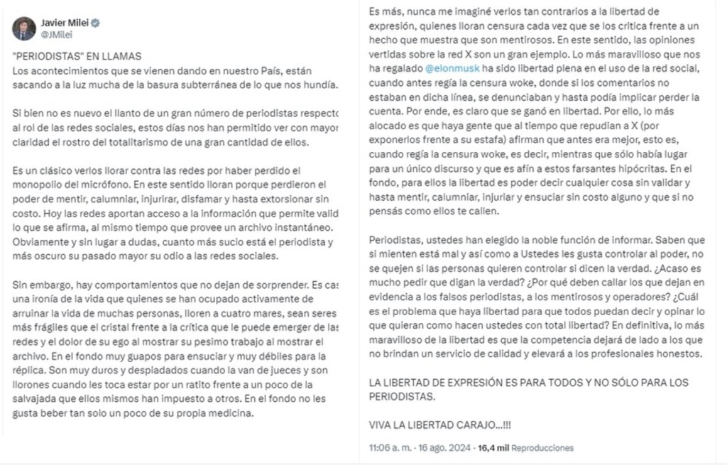 Javier Milei’s government has turned violence against journalists into an informal state policy. It doesn’t need gag laws or national broadcasts. Social media, criminal cases, and the looming promise that any journalist could be next will suffice. This is no longer about censorship, but about retribution. About punishing not so much what is said, but the mere act of daring to say it. What gets penalized is not the content itself, but the gesture of voicing it.