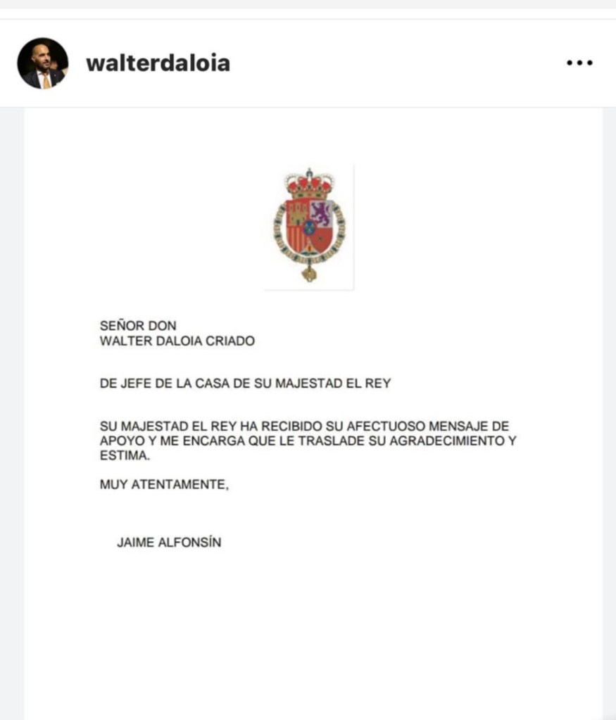 The Argentine Virreinal Queen icon is Walter D’Aloia Criado—not Honorary Consul of Spain, as he claims, but of Spain in Bolívar, a small town in the Province of Buenos Aires.