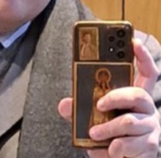 Lo del gordito con bigote , puedo entender su idea del vestir, como ser más elegante, pero lo que se pone, la pose, le da totalmente loser y ese marco del celu de la virgen más.