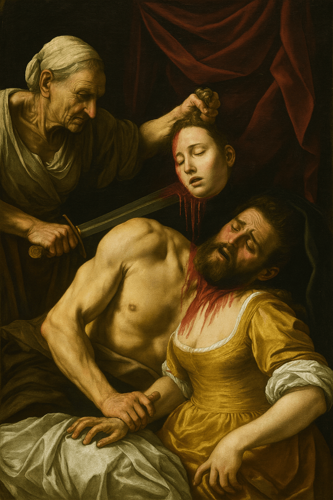 For a long time I thought her mother was Judith —from the Old Testament. But really, Judith was Florencia herself. Not the heroic Judith who saves her people, but an inverted Judith: not the one who beheads the enemy, but the one raised to be elegantly beheaded. Florencia was trained to play the sacrificial victim —the one who doesn’t protest, doesn’t interrupt, and dies standing without making a mess. In her house, Holofernes wasn’t a violent general. It was a daughter trained to walk into the knife without realizing it.