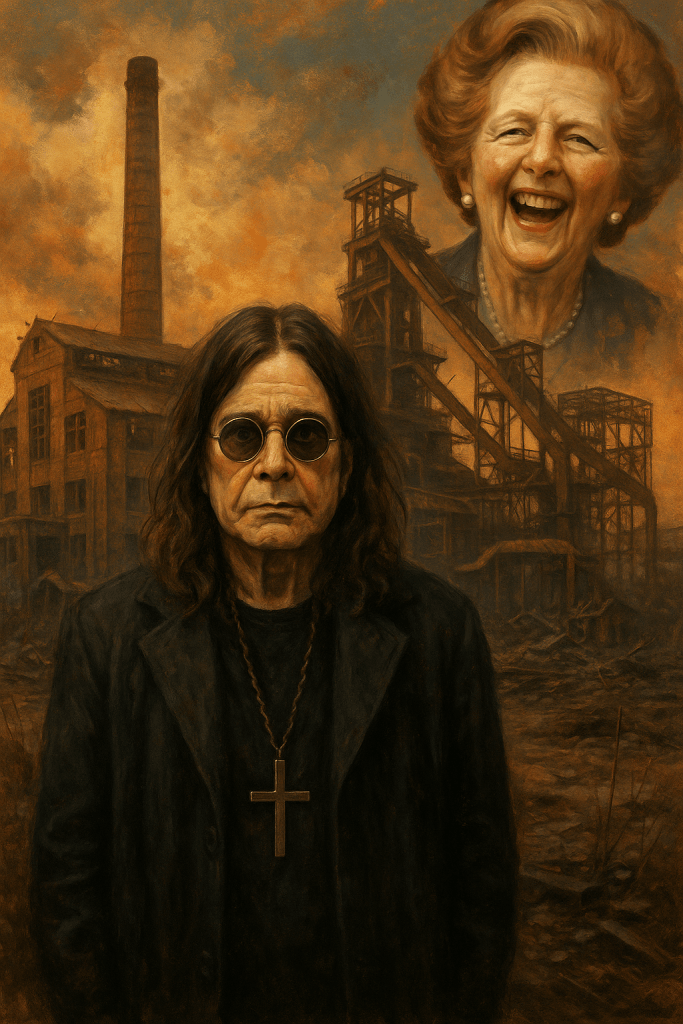 John Michael “Ozzy” Osbourne nació en 1948 en Aston, un barrio obrero de Birmingham marcado por el humo de las fábricas y las secuelas de la Segunda Guerra Mundial. Su familia, como muchas otras, vivía con lo justo; su padre trabajaba en General Electric y su madre en Lucas Automotive. Ozzy abandonó la escuela a los 15 años, pasó por diversos empleos precarios —desde afinador de bocinas hasta obrero metalúrgico— y halló en la música no una vocación artística sino una tabla de salvación. En 1968 fundó Black Sabbath junto a otros tres desertores del destino fabril: Tony Iommi, Geezer Butler y Bill Ward. Lo que crearon no fue solo una banda: fue una sonoridad que emanaba del subsuelo de la clase obrera. Como señaló Geezer, querían que su música “oliera a fábrica”. Como le ocurrió a Pappo, que afinó su oído en talleres mecánicos de La Paternal y creó un blues sucio que hablaba de calles rotas y manos gastadas, Ozzy hizo del ruido un lenguaje obrero.