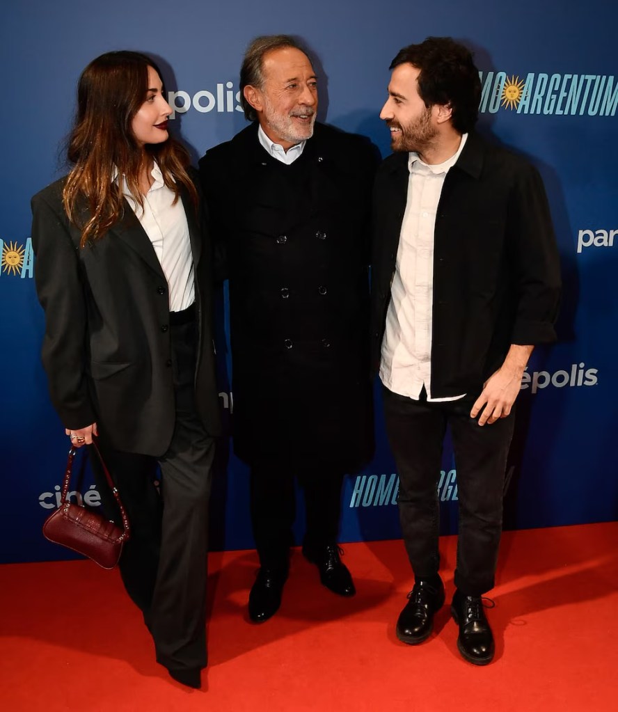Nada explica mejor la operación que el vestuario de Francella en la premiere. La doble abotonadura no sólo adelgaza y verticaliza; condecora. La camisa blanca no sólo ilumina; purifica. El zapato lustrado no sólo brilla; firma. El actor se coloca fuera del sistema de color de la noche —fuera del rojo agresivo, del brillo espejado, de la textura publicitaria— para quedar impoluto. A su alrededor, el equipo presenta toda la gama de imposturas: cuero verde metalizado con anillo de peaje, faldas con cola inútil, tapados camel con mangas que devoran nudillos, foulards de turista en Montmartre, bombers con falda “deconstruida”, estampas que vibran como mantel de bodegón hipster, plataformas de cabaret, boinas museales, jeans en charco. El styling de la alfombra arma una antología de clichés que la película, acto seguido, consagrará. La ropa hace el spoiler: el grotesco que veremos ya ha sido normalizado por la foto.