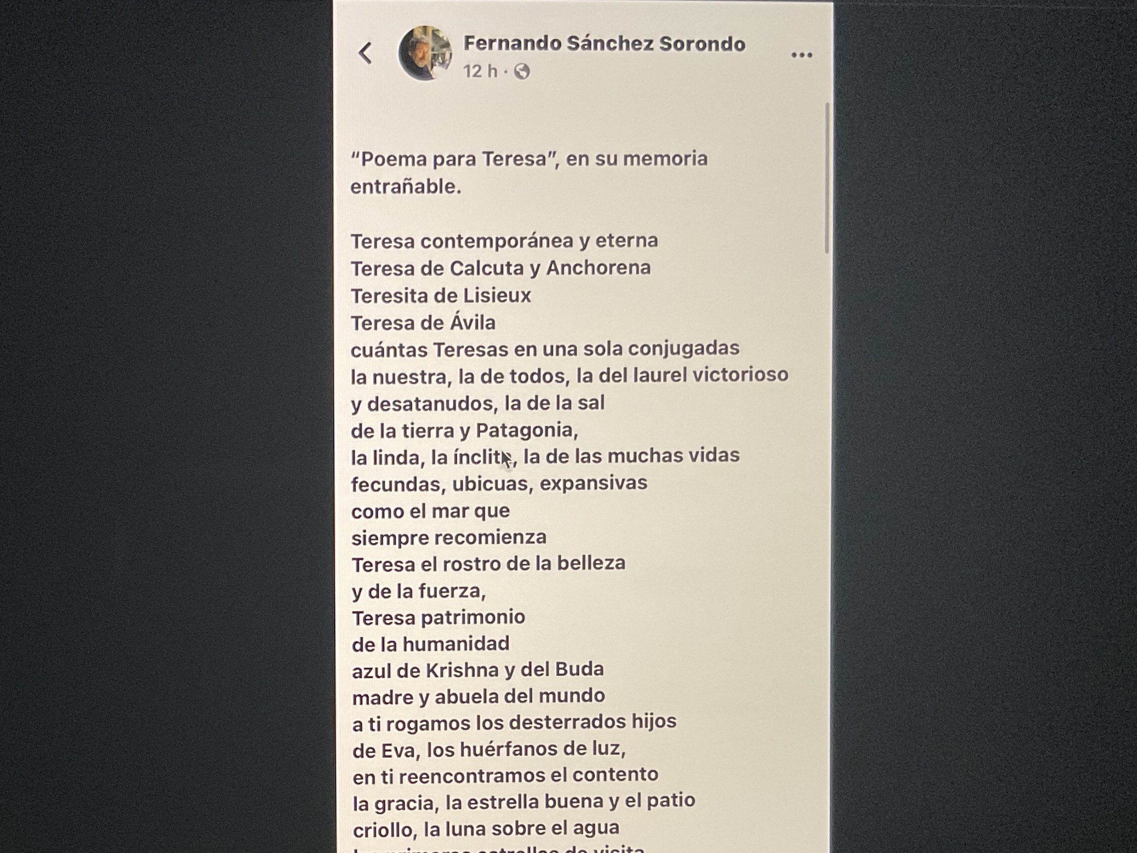 Un texto de Sanchez Sorondo ubica a Anchorena en una cadena de “Teresas”: Teresa de Ávila, Teresa de Calcuta!!! La difunta inscripta en una genealogía de santidad femenina que trasciende lo nacional para situarla en una estirpe espiritual universal.