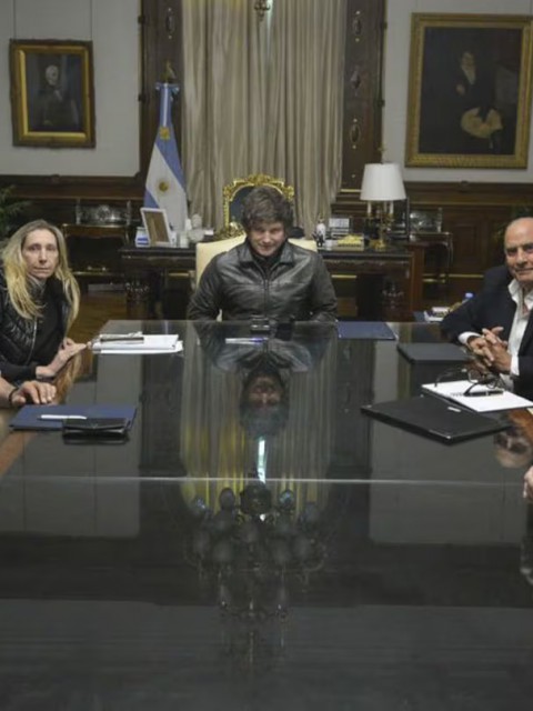 Si uno mira la composición, el efecto es clásico: simetría, frontalidad, foco central. El resto —ministros, asesores, papeles, tazas— es decorado. Como en los mosaicos absidales, el entorno existe para apuntalar la figura, no para disputarla. La apuesta, en términos estrictos, es imperial. De ahí la tonalidad caligulesca que se filtra: una soberanía que no necesita el trabajo de la persuasión. Mira y decide. En este caso, Milei le habla visualmente al que no lo voto y le dice: “Ahora vas a ver lo que te va a pasar”.