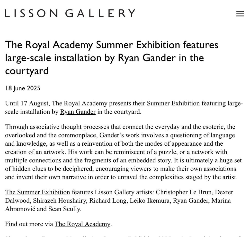 Ryan Gander’s elevation to the Royal Academy’s 2026 Summer Exhibition is not an anomaly; it is the perfect expression of this lineage and of the times the UK is going through.