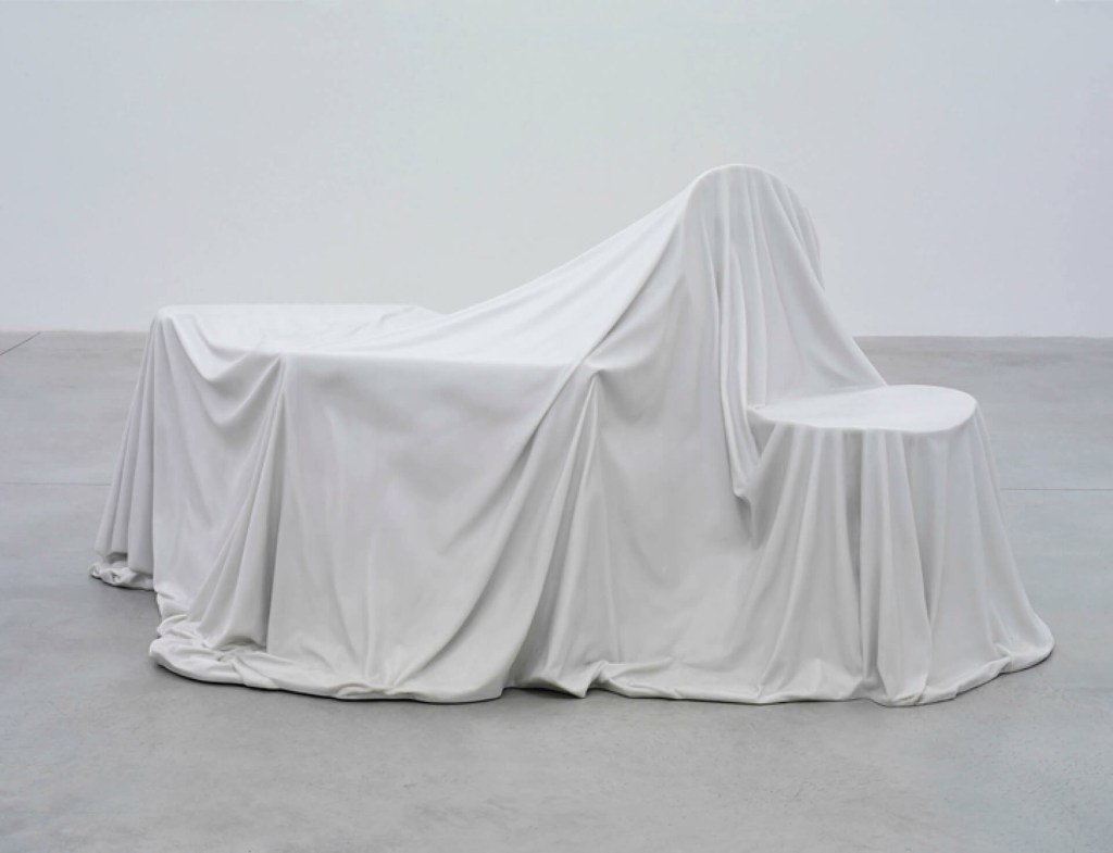 The marble works based on his daughter playing ghost under a bedsheet exemplify this tendency. A simple childhood gesture becomes a monumental drapery of stone. The body disappears; what remains is the idea of imagination. The work is made for the museum: white, smooth, photogenic, affective but not sentimental. It is not about trauma; it is about the cognitive beauty of play. The narrative of creative development overlays the sculpture, producing a gentle aura of universality.