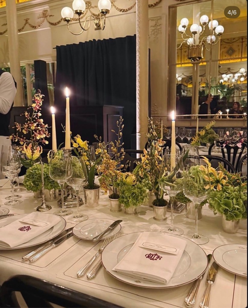 La narrativa visual sugiere además que Awada habría sido invitada a una cena especial de Dior en el Ritz. Sin embargo, cuando se analizan las imágenes con detenimiento aparecen indicios de otra cosa. La disposición de la mesa, el arreglo floral con estética patagónica y la ubicación del grupo cerca de la zona de servicio del restaurante sugieren más bien una cena privada organizada por ella misma para un grupo de amigos. A pesar de eso, la curaduría de las fotos insiste en otro relato: los encuadres subrayan repetidamente los anagramas del Ritz y de Dior, como si la escena necesitara reforzar constantemente su vínculo con esas marcas. En vivo, en cualquier restaurante europeo de alto nivel, enfatizar obsesivamente el logotipo de los platos o de la vajilla se percibiría como algo incómodo, casi un papelón. Pero en Instagram funciona como señal visual: lujo, marca, pertenencia.
