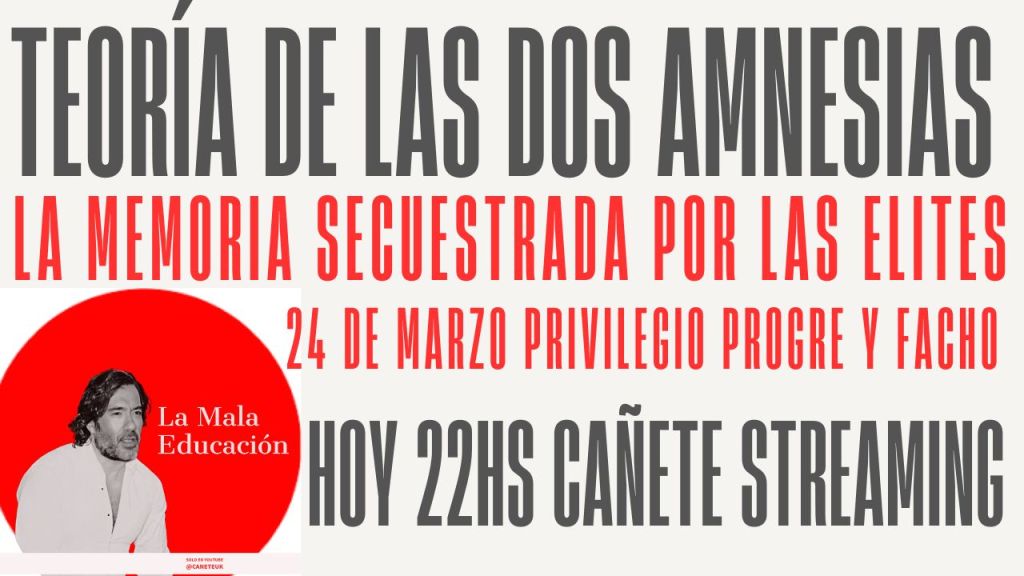 Hoy a las 22 hs, como siempre, en La Mala Educación, voy a dedicar el streaming a una discusión incómoda pero necesaria: cómo, desde 1983 hasta hoy, la memoria de los horrores perpetrados por el terrorismo de Estado iniciado el 24 de marzo de 1976 —y prolongado hasta el colapso del régimen tras Malvinas— fue progresivamente capturada, administrada y reinterpretada por distintas élites políticas, culturales y mediáticas. La visibilidad internacional alcanzada por las Madres de Plaza de Mayo y la instalación del problema de los desaparecidos abrieron un campo de legitimidad moral enorme. Pero ese capital simbólico no quedó distribuido de manera horizontal: con el tiempo, fue apropiado, institucionalizado y convertido en recurso de autoridad por sectores que pasaron a hablar en nombre de la memoria.
