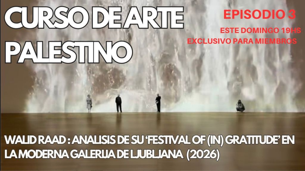 Este domingo a las 19 hs (hora Argentina), streaming exclusivo para miembros dentro del Curso sobre arte y genocidio palestino, dedicado a la obra de Walid Raad y a la exposición Festival of (In)Gratitude en Moderna Galerija, Ljubljana, con foco específico en la instalación de la cascada monumental. La sesión va a abordar la cascada como reorganización del espacio museístico, desplazamiento del archivo hacia la lógica del flujo y transformación del museo en un paisaje inestable, donde la memoria aparece como acumulación, derrame e inestabilidad.