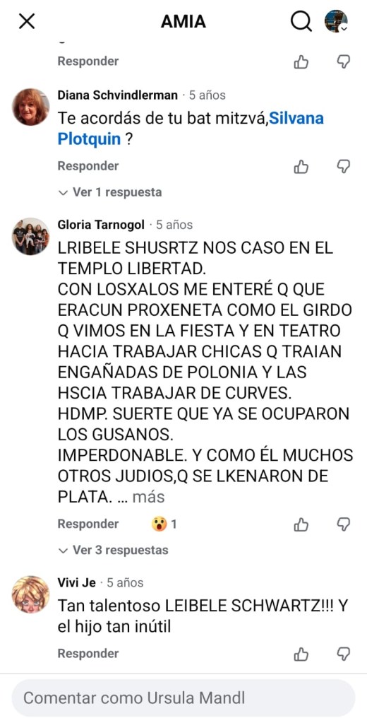 Hace cinco años apareció una denuncia firmada con nombre y apellido: Gloria Tarnogol. El texto irrumpe en medio del recuerdo (memorialización) consensuado, aunque un tanto orquestado (por el Grupo Clarin), del gran cantor del Templo Libertad y produce un cortocircuito. Esto introduce una grieta en la imagen biográfica que pareciera ser el trauma familiar Schwartz-Suar. La figura del cantor —construida como voz espiritual, emotiva, comunitaria— queda atravesada por una sospecha que no se integra al relato oficial. La memoria institucional sigue siendo armónica, pero ahora sabemos que esa armonía es una superficie.